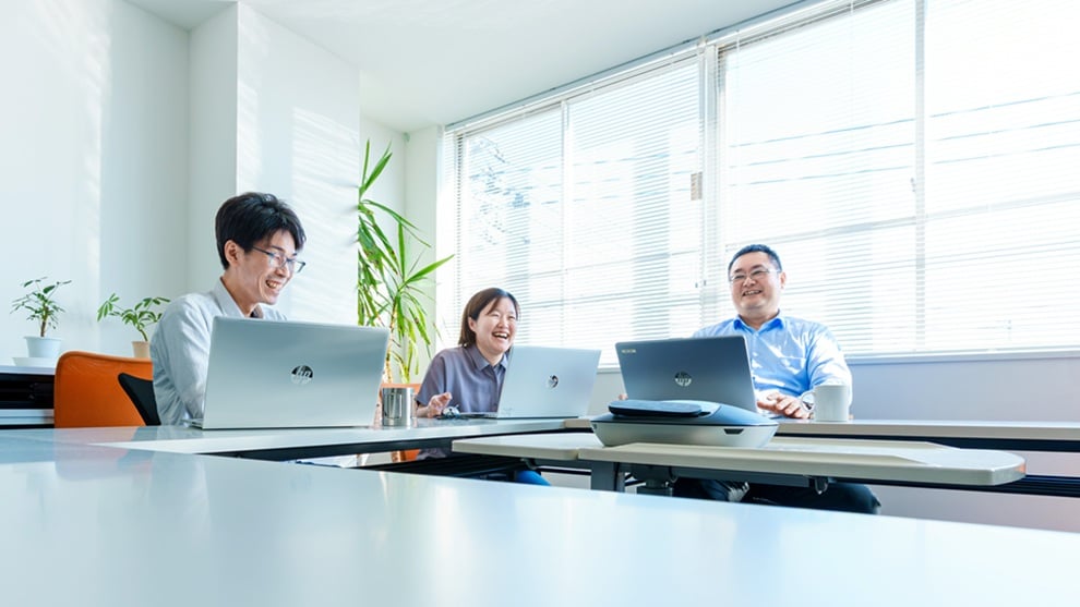 入社2ヶ月間程度は、採用職種に合わせて社内外で研修を行います。技術職は、社外研修として他社の新入社員と「プログラミングの基礎」「チーム開発」を経験していただきます。研修最後には、不明点の振り返り学習期間を設け、不安解消を目指します。